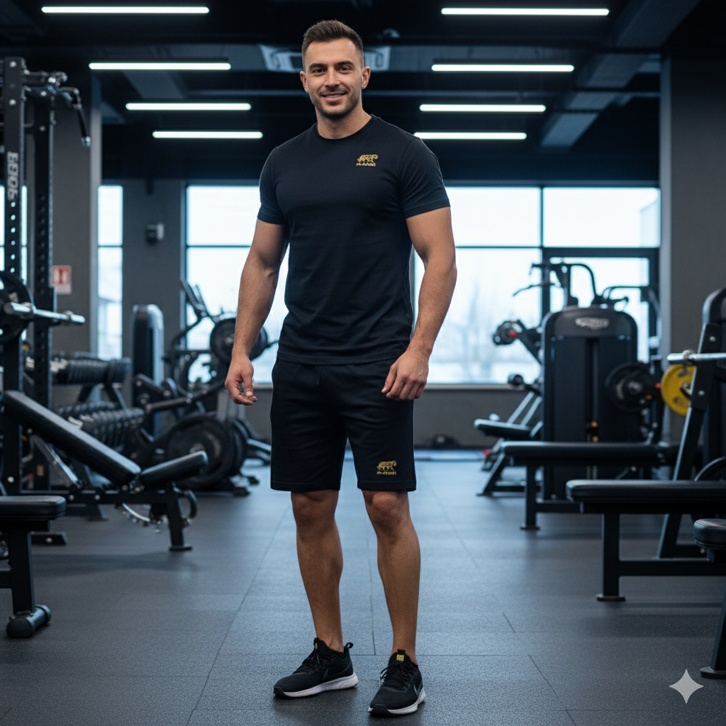 Set teplákových kraťas a bavlněného trika PI-SHER za výhodnou cenu. Sjednocený design vhodný do města, přírody nebo jen na vycházku.